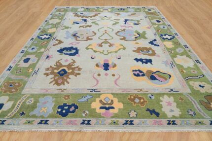 Luxury Handcrafted Oushak Area Rug – Soft Wool Carpet with Classic Turkish Floral Design