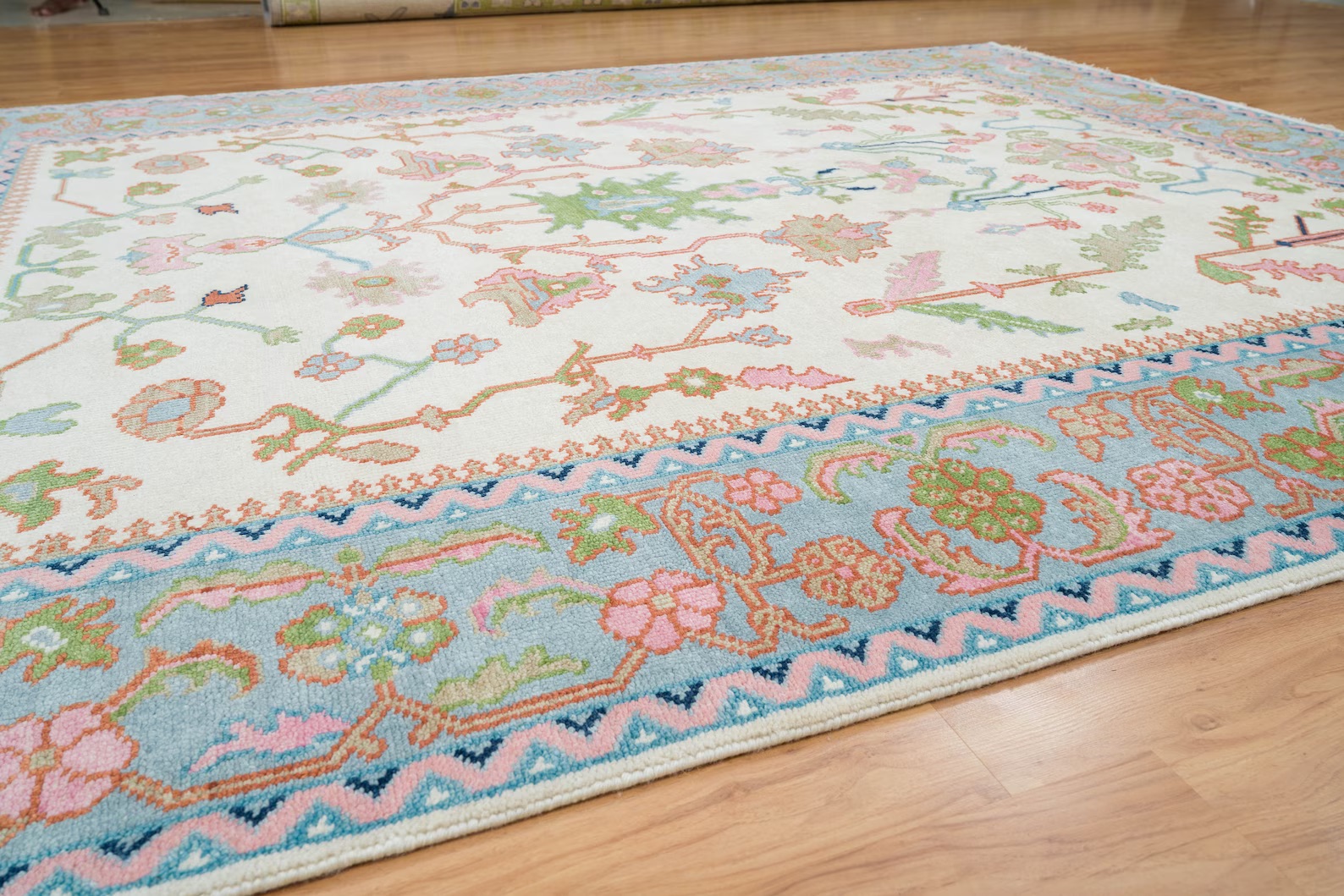 Elegant Hand-Knotted Oushak Area Rug – Traditional Turkish Design, Soft Wool Carpet for