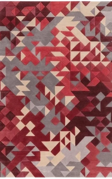 Hand Tufted Mosaic Rug – Colorful Wool Carpet with Artistic Tile-Like Design
